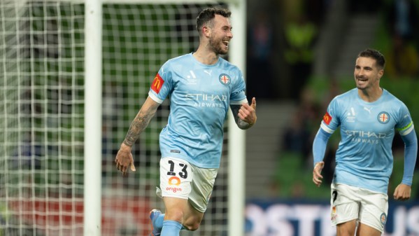 Jamie Maclaren gives Melbourne City the lead with his 19th goal of the season.